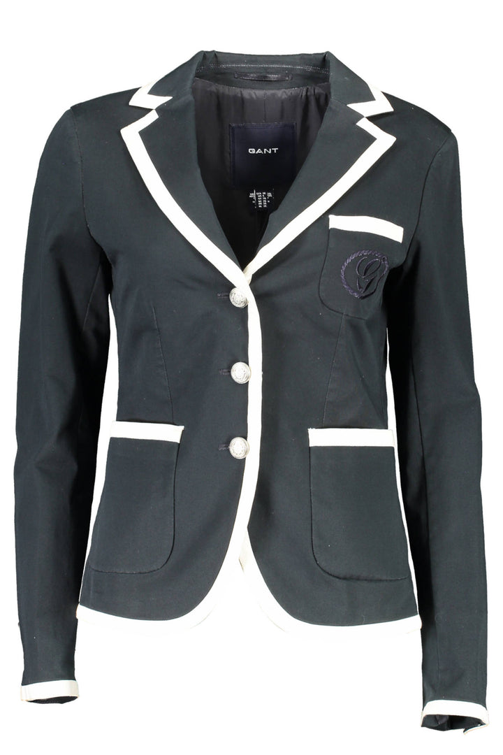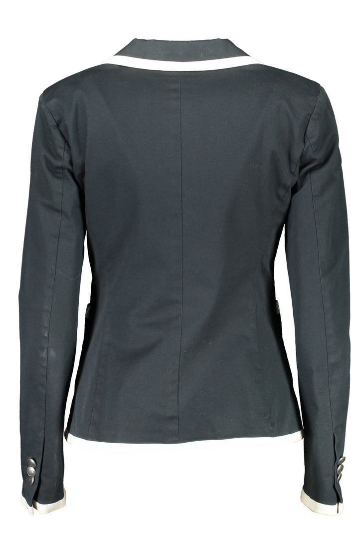 JAQUETA CLÁSSICA, MANGAS COMPRIDAS, 2 BOLSOS EXTERNOS, BOLSO ÚNICO, DETALHES DE CONTRASTE, BOTÕES, LOGOTIPO