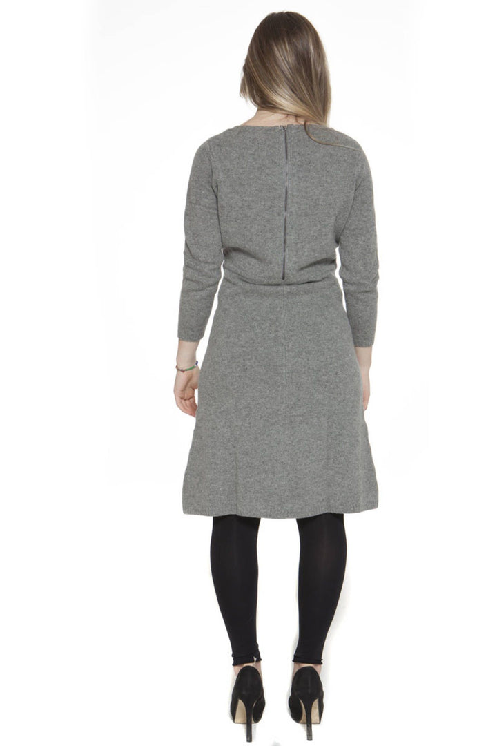 short dress, 3/4 sleeves, redondo pescoço, back fecho, logo