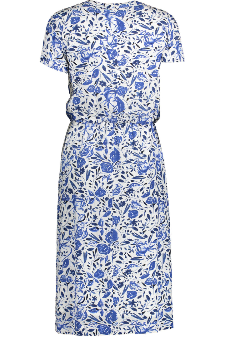 vestido longo com mangas curtas, gola redonda, 2 bolsos, cós elástico, fecho nas costas, logótipo
