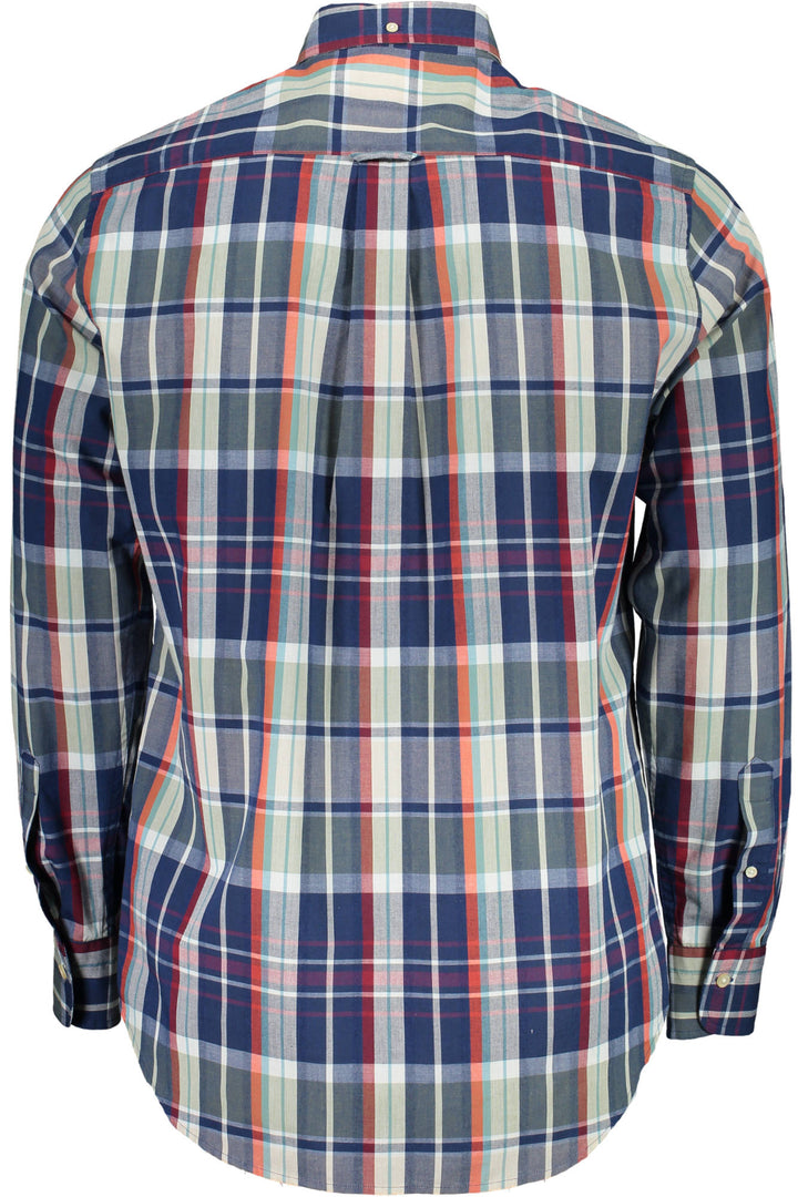 camisa normal de manga comprida, gola abotoada, bolso único, punhos com 1 botão, botões, logótipo