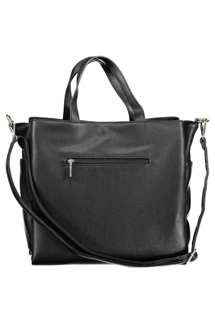 bolsa com 2 alças, alça ajustável e removível, 3 bolsos externos, 2 bolsos internos, 2 bolsos laterais externos, detalhes em contraste, fecho com zíper e ímã, logotipo