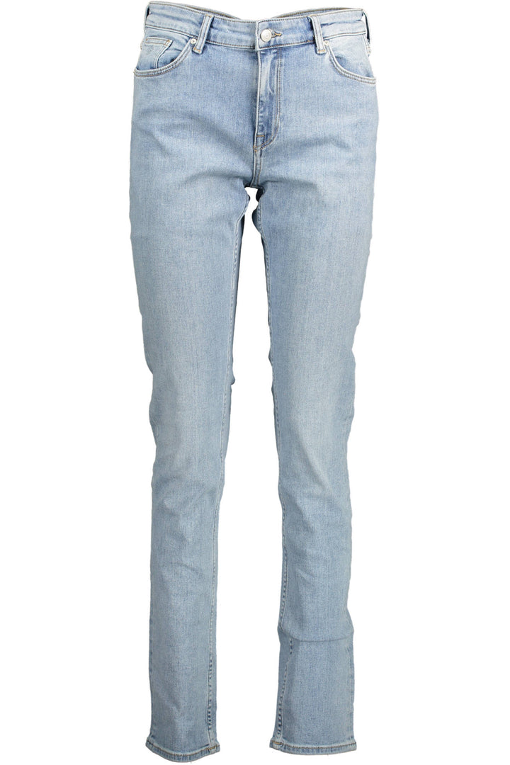 Jeans slim de 5 bolsos, botão e zíper, efeito lavado, logo, algodão orgânico