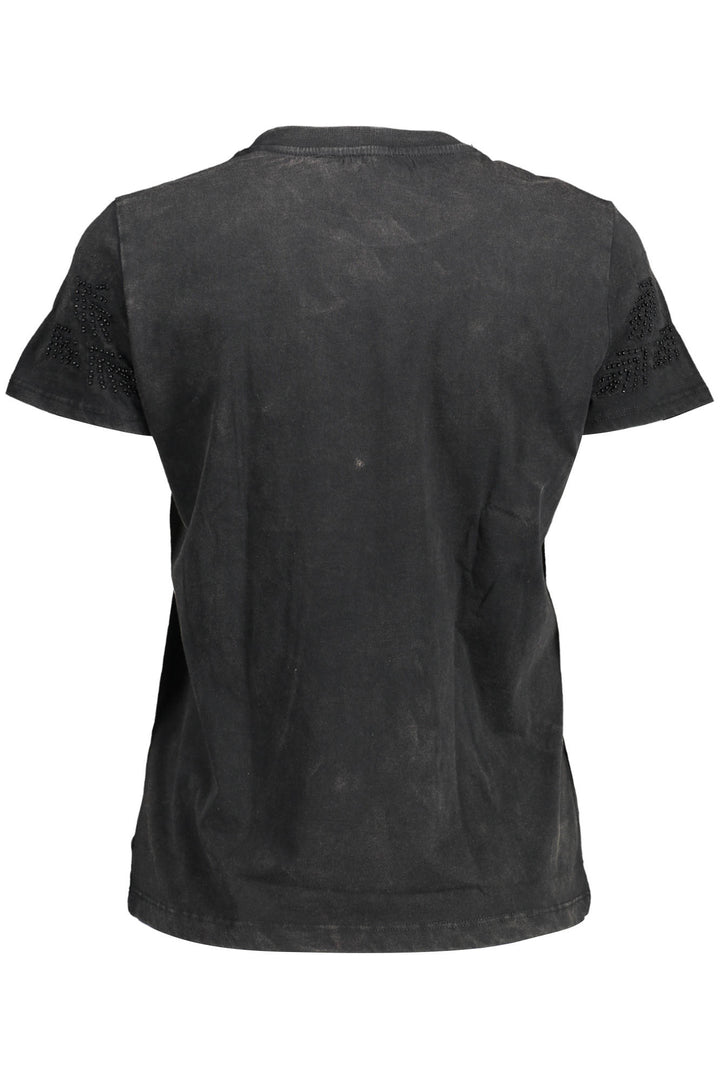 camiseta de manga curta, gola redonda, estampado, aplicações, logotipo