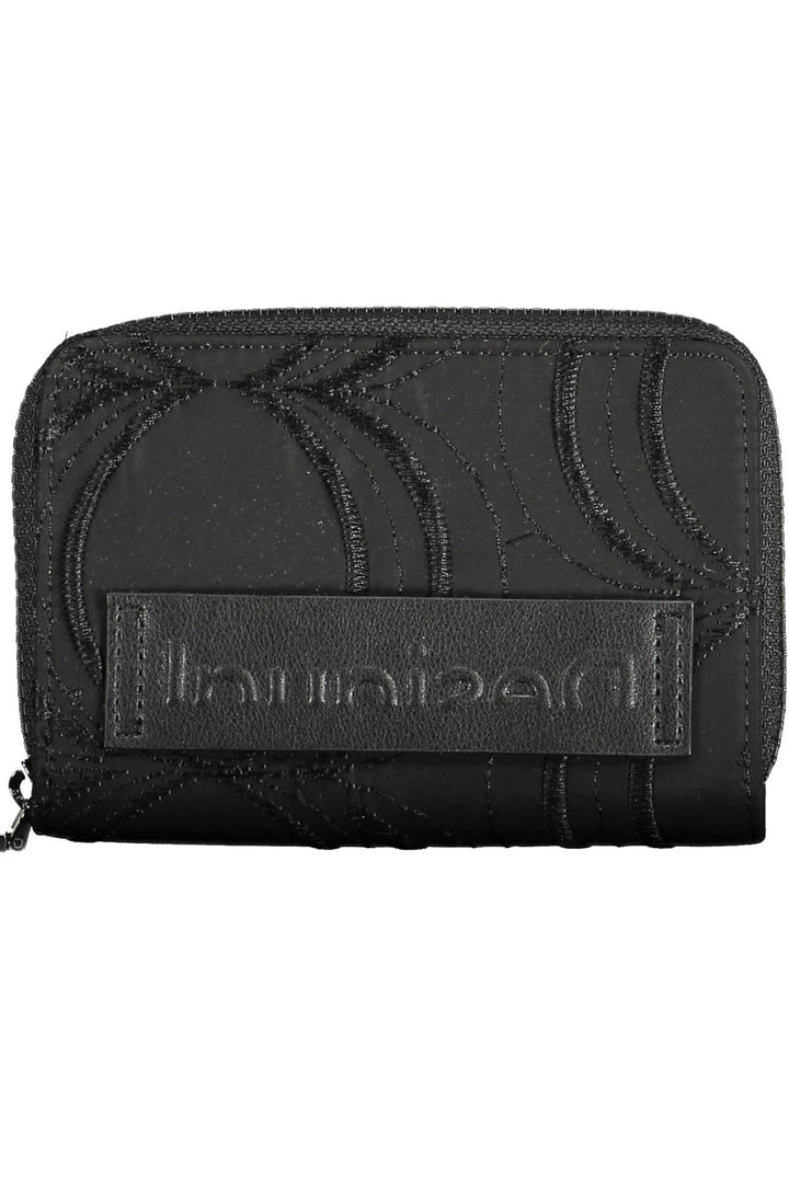 carteira 5 compartimentos, porta moedas, espaços formados por cartão, detalhes em contraste, fecho de correr, logótipo
