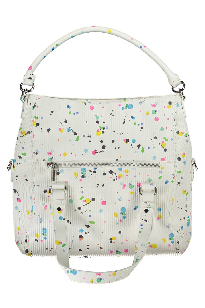 bolsa 2 alças removíveis, 1 alça removível, alça ajustável e removível, 1 bolso externo, 2 bolsos internos, detalhes em contraste, fecho de correr, logotipo