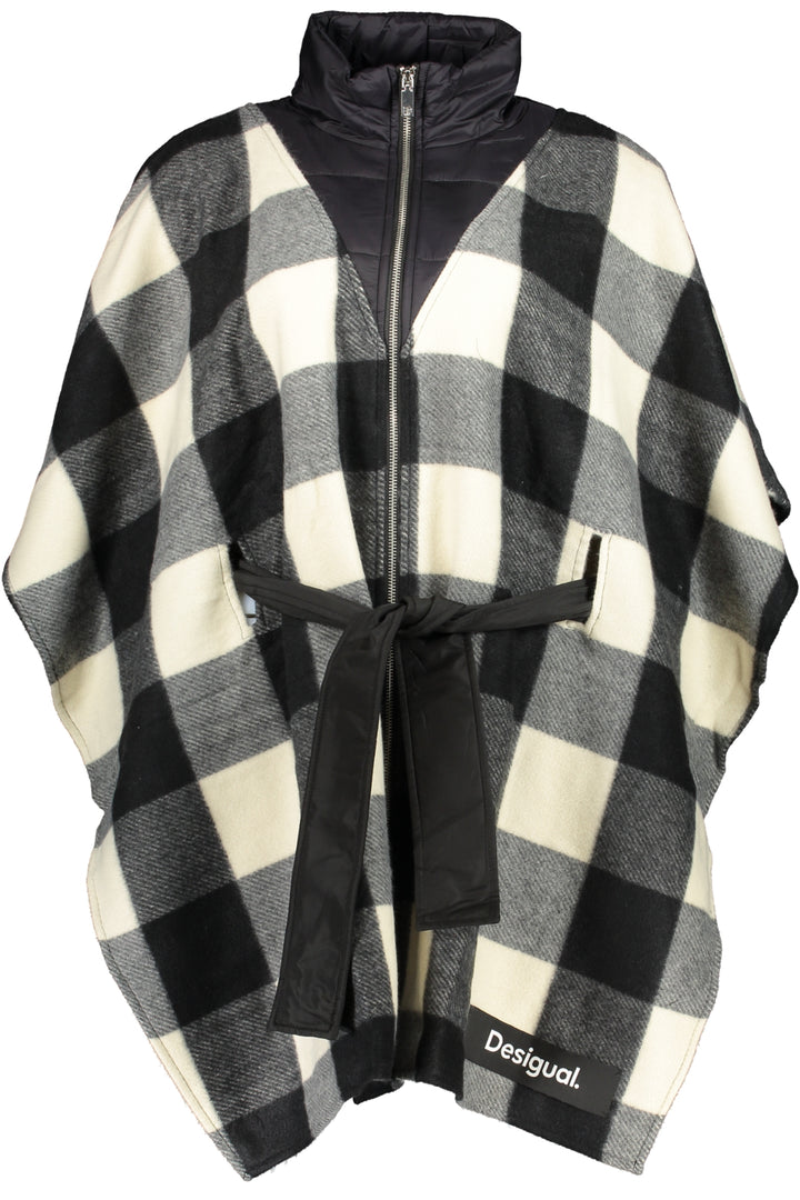 PONCHO DE PESCOÇO ALTO, ZÍPER, CINTO, DETALHES DE CONTRASTE, LOGOTIPO