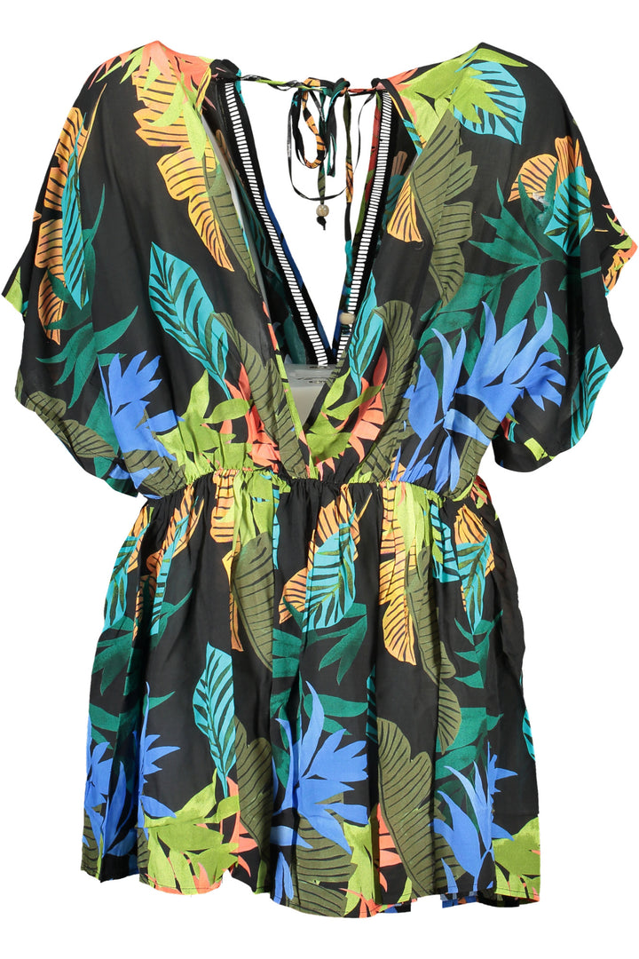VESTIDO PADRÃO CURTO, MANGAS CURTAS, DECOTE EM V, DETALHES DE CONTRASTE, LOGOTIPO