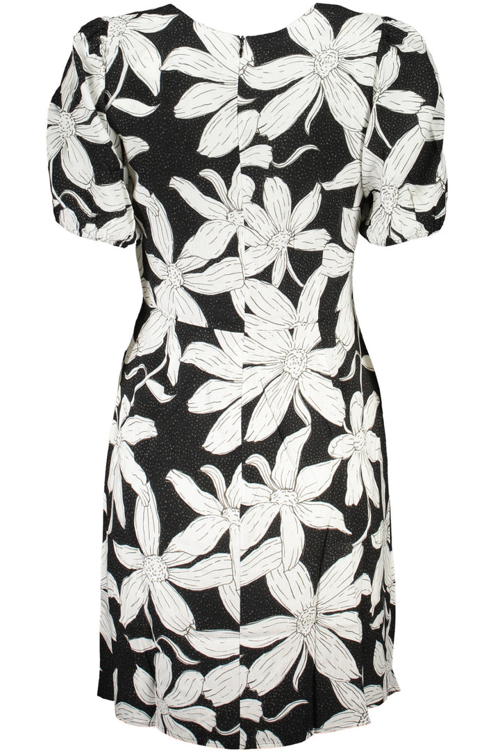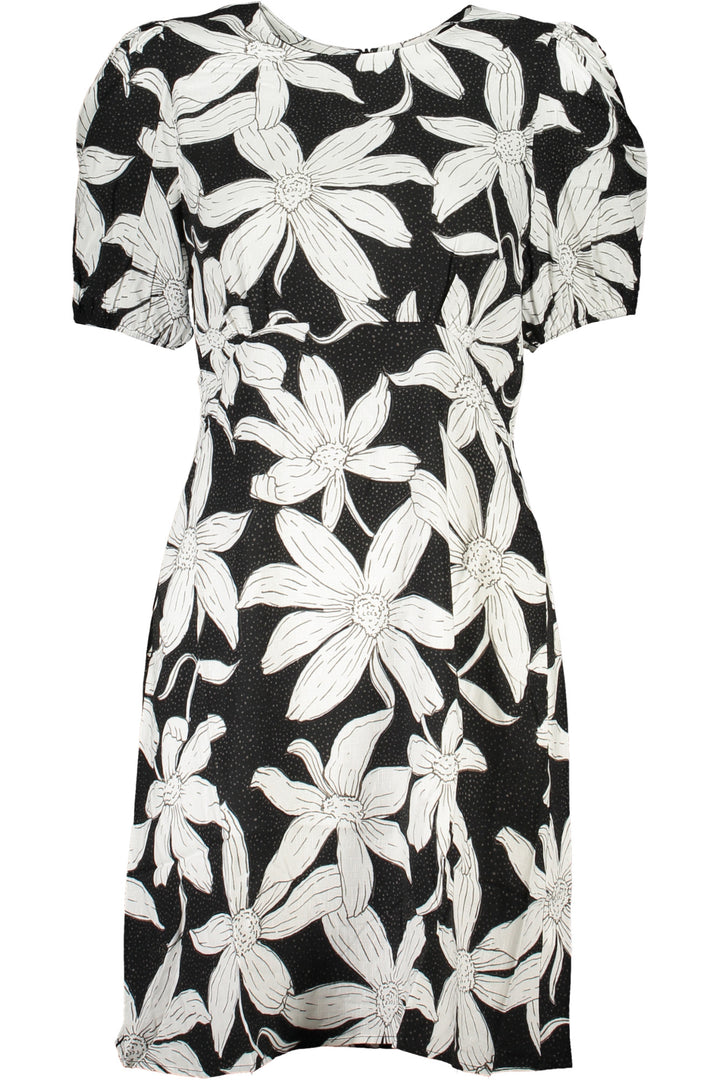 VESTIDO CURTO, MANGAS CURTAS, GOLA, PADRÃO, ZÍPER NAS COSTAS, LOGOTIPO