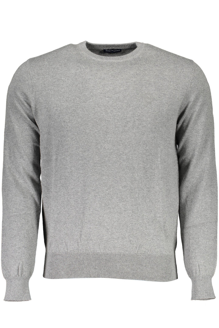 mangas compridas, gola redonda, bordado, logótipo, fibras recicladas