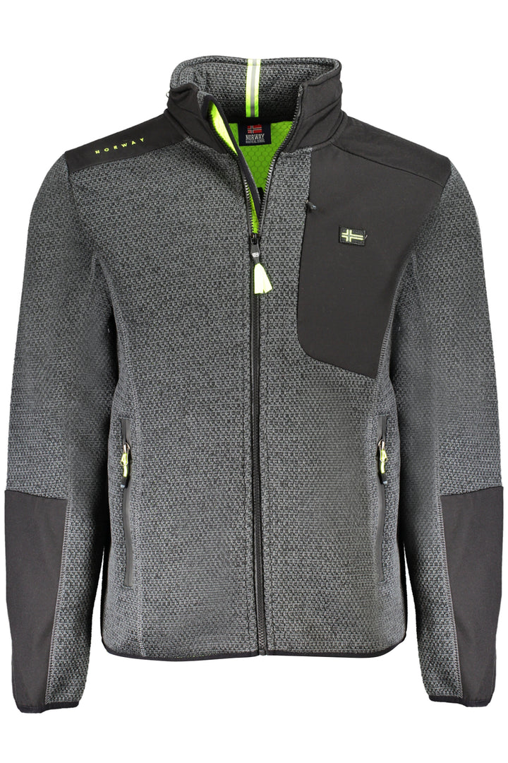 JAQUETA ESPORTIVA, MANGAS COMPRIDAS COM CAPUZ REMOVÍVEL, 2 BOLSOS EXTERNOS, 2 BOLSOS INTERNOS, DETALHES CONTRASTANTES, ZIP, LOGOTIPO