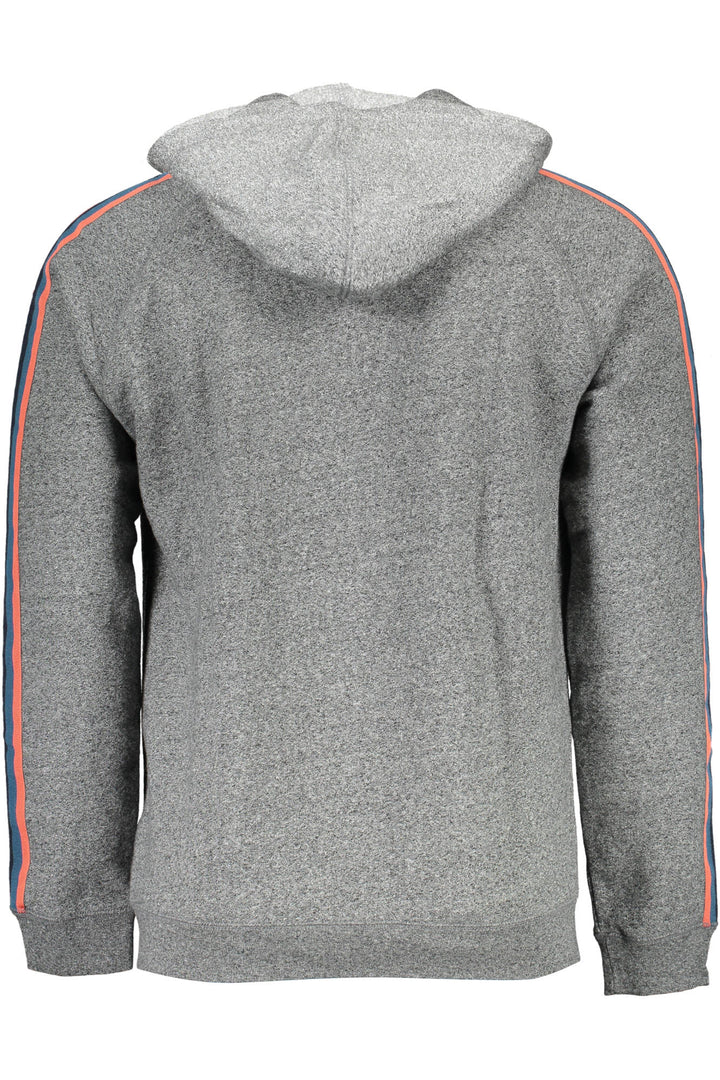 moletom de manga comprida, 2 bolsos, capuz, zíper, detalhes contrastantes, logotipo