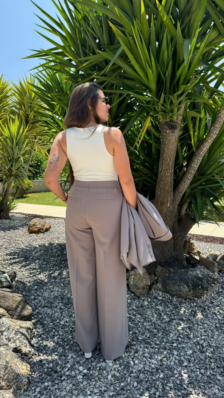 Calças Reta Granizo Shoulder de Mulher