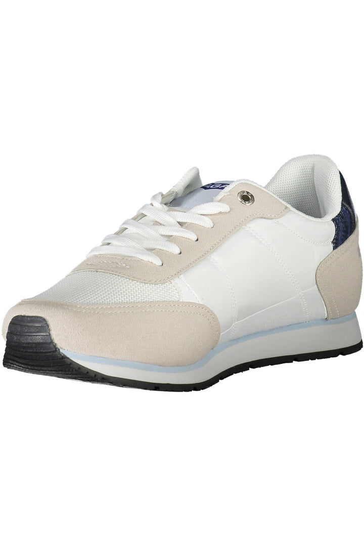 sapato esportivo com atacadores, detalhes contrastantes, logotipo
