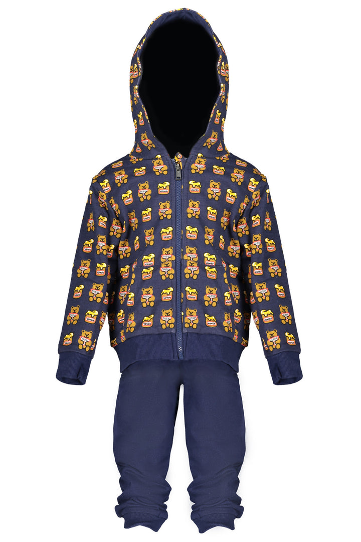 CONJUNTO COMPLETO, CAMISOLA MANGA COMPRIDA COM CAPUZ, 2 BOLSOS CENTRAIS, ZIP, DETALHES DE CONTRASTE, CALÇAS ELÁSTICAS COM LAÇOS, 1 BOLSO TRASEIRO, PUNHO NO TORNOZELO, LOGOTIPO