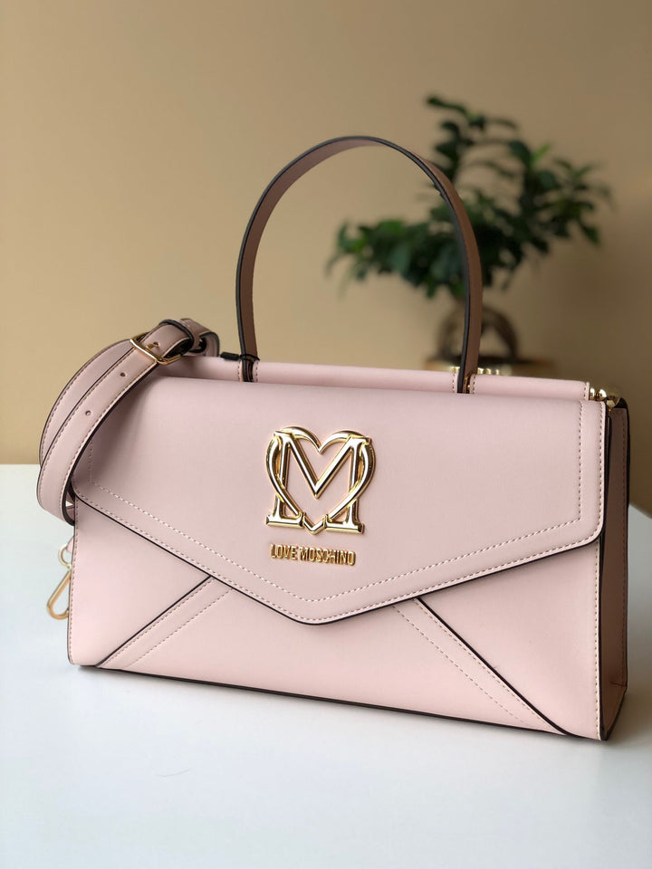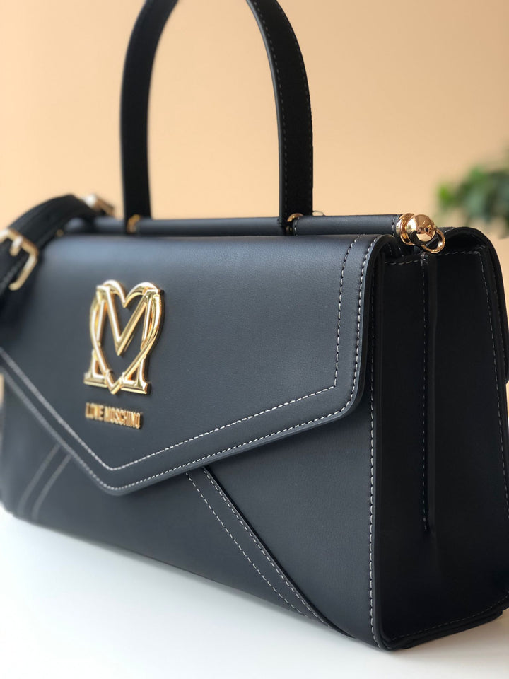 Mala de mão Love Moschino com alça de ombro removivél e ajustável. Fechos magnéticos e dois compartimentos bem espaçosos, logótipo frontal em dourado. 31,5x18x10cm