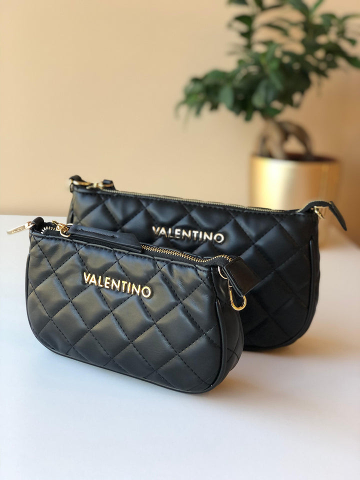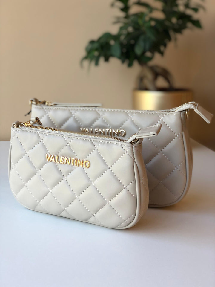 Mala Ocarina Valentina, fecha com zíper, alça de ombro removível (comprimento aprox. 120 cm), acessórios de metal dourado, alças disponível em pares, dentro um compartimento principal, um bolso com zíper, um bolso deslizante. Dimensões: 23 x 15 x 6 cm (largura x altura x profundidade)