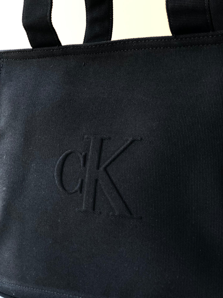Mala Calvin Klein tote bag preta, logotipo 3D, alça de mão ou de ombro, mala em algodão macio, compartimento único, com duas bolsas e um bolso com zíper.