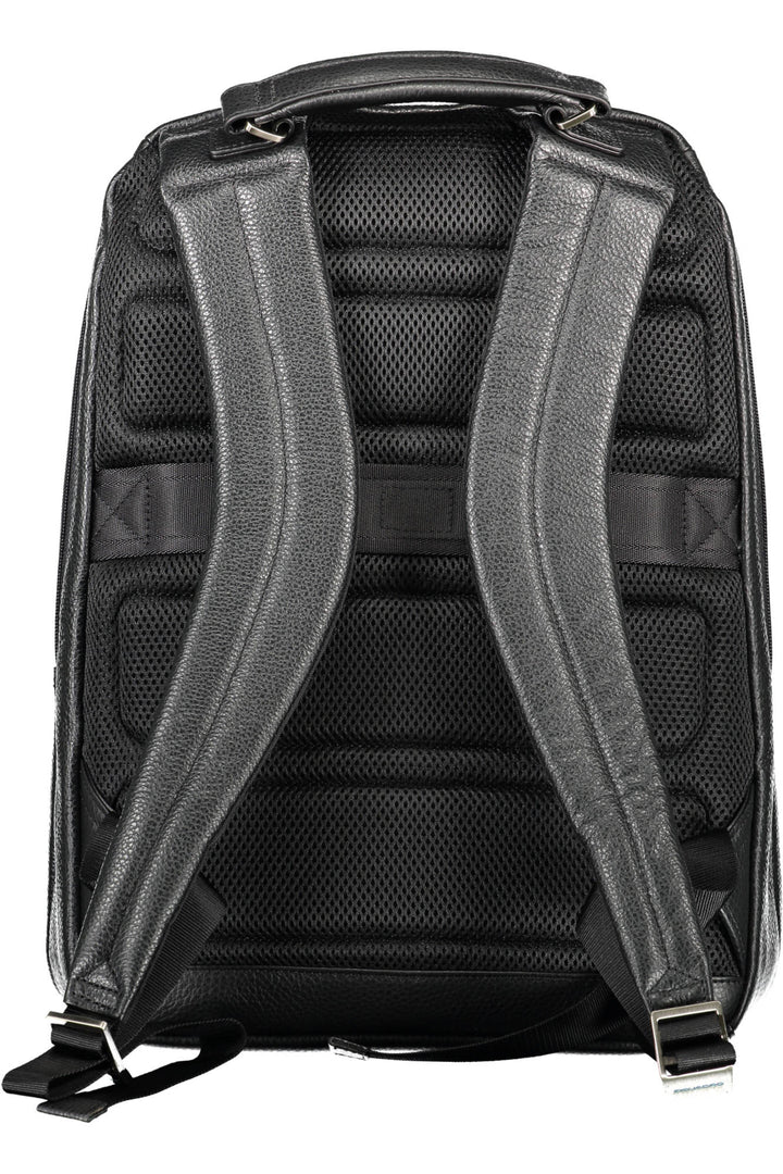 mochila 1 alça, alças ajustáveis, 3 bolsos externos, 1 bolso interno, espaço interno para laptop, espaços internos para porta-canetas, fecho de correr, logotipo