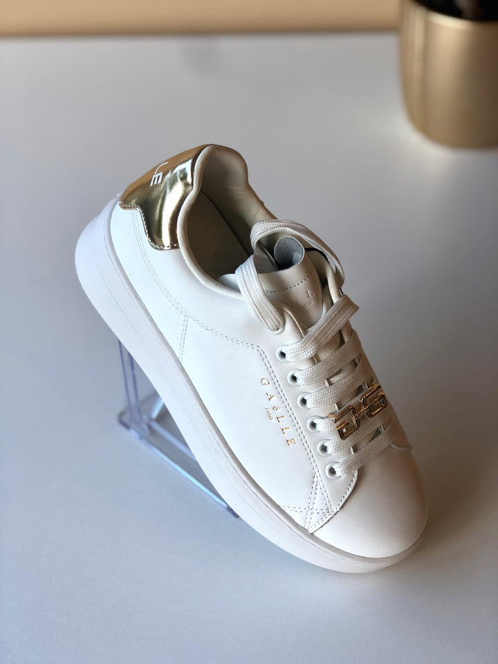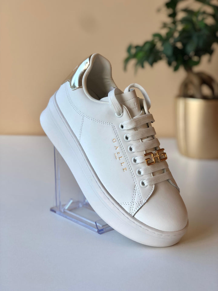 Sapatilhas Gaelle Paris mulher, tênis femininos com atacadores, atacadores com logotipo duplo para um estilo diferenciado, detalhes contrastantes que valorizam o design, logotipo visível, símbolo de autenticidade.